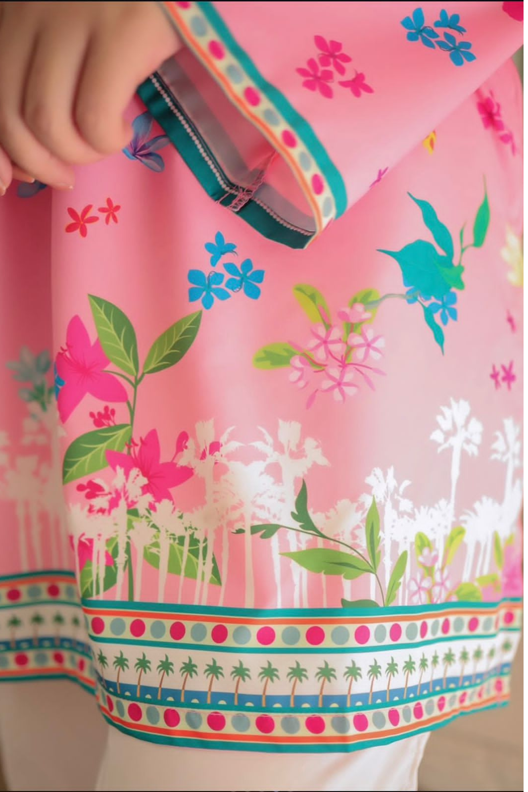 Bubblegum embrace vibrant style with this cheerful pink and white printed kurta set. This...