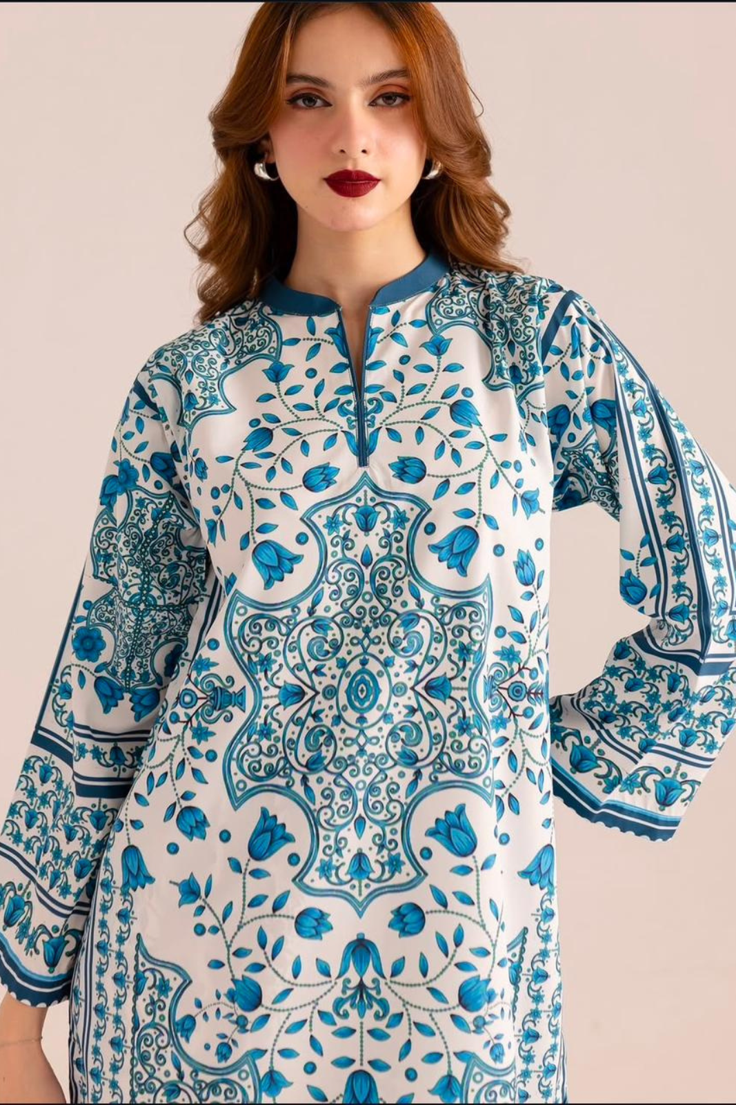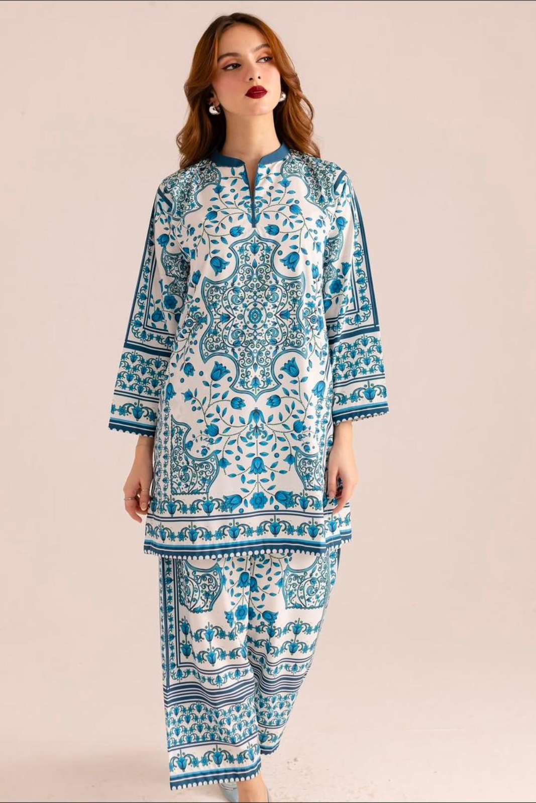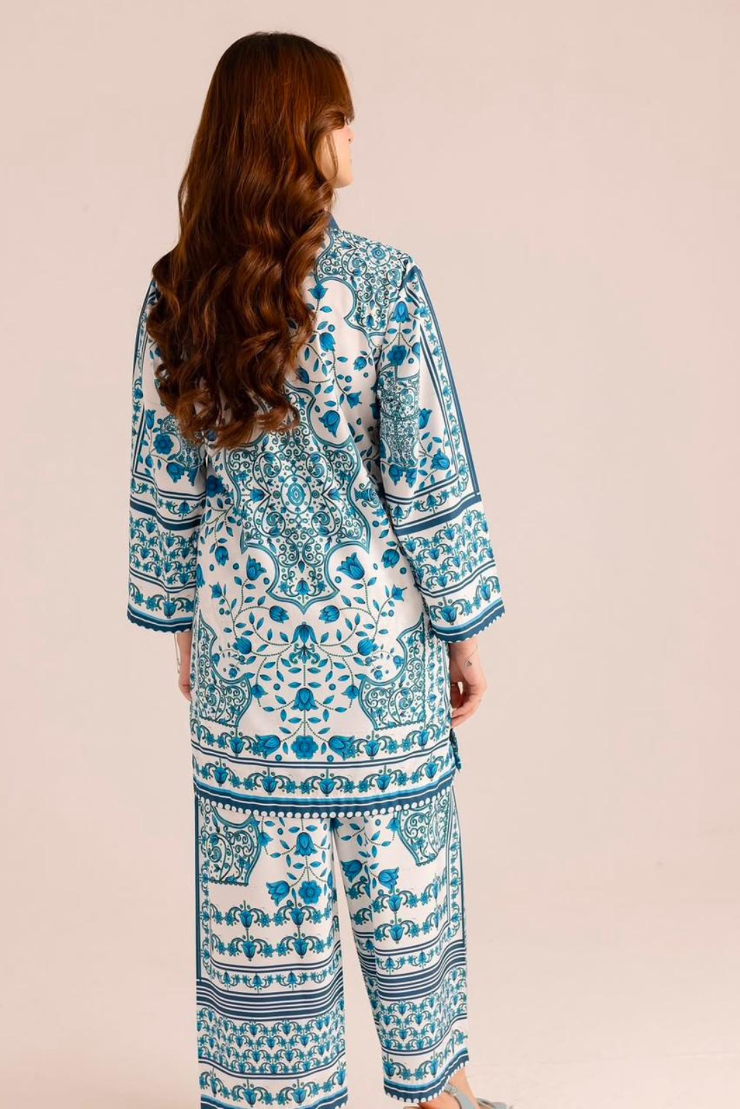 Majolica Step out in style with this elegant blue and white printed kurta set....